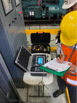 - Medición de resistencia de aislamiento (megohmetro) a cables de la acometida, apartarrayos, bus, cuchillas, seccionador(es) e interruptor(es).